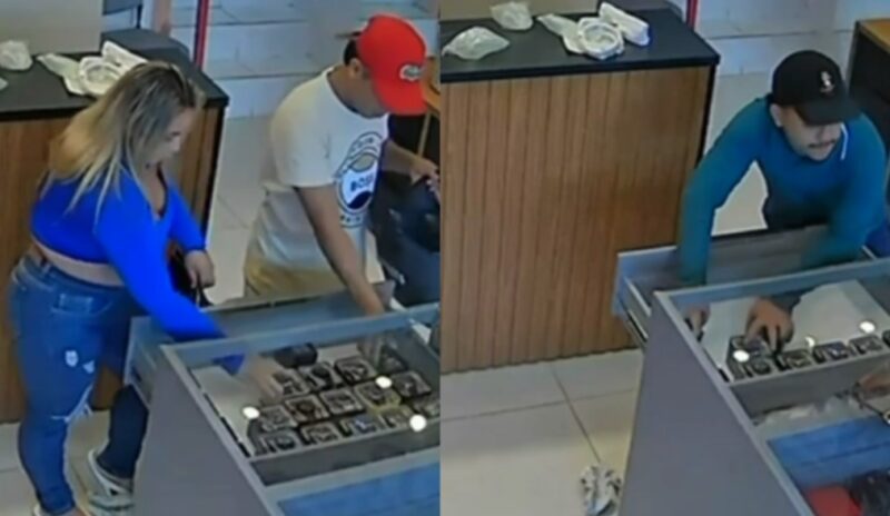 Segundo a Polícia Militar do Amazonas, o crime ocorreu no fim da tarde de segunda-feira (2), quando dois homens e uma mulher entraram no comércio e subtraíram produtos expostos, como relógios e bolsas de alto valor. As imagens mostram os suspeitos recolhendo os itens e, em seguida, deixando o local em um carro modelo Ford Ka preto.