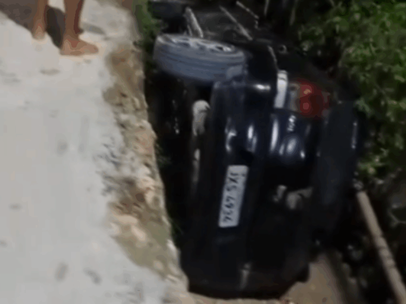 Há também a versão de que o motorista teria tentado desviar de uma motocicleta, momento em que acabou atingindo a abertura na pista. Com o impacto, os ocupantes caíram, e uma jovem ficou ferida.