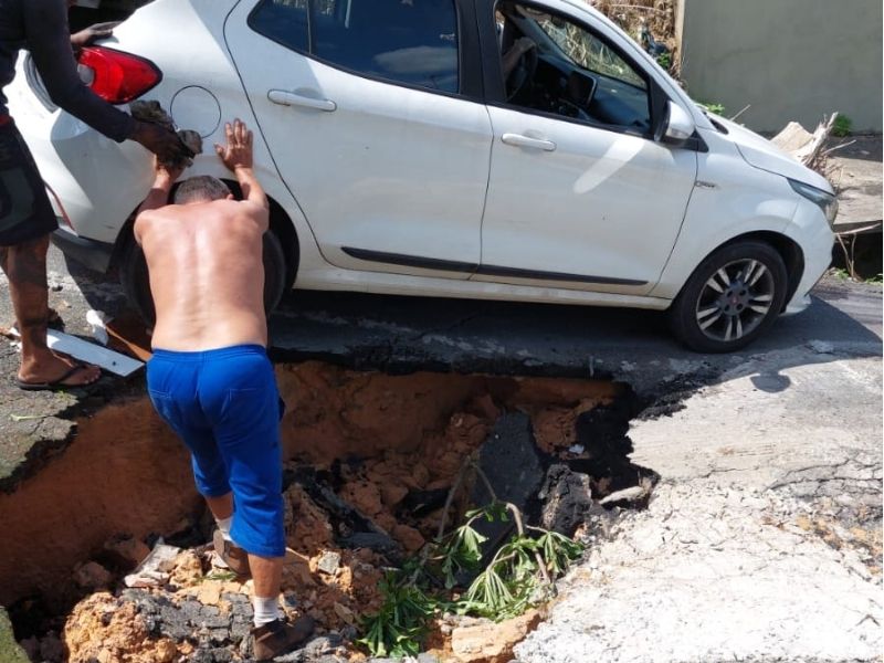 Manaus (AM) – Uma cratera se abriu em uma rua localizada atrás da loja Magazine e da GMAD – Centro do Alumínio, no bairro Parque Dez, zona centro-sul de Manaus, e acabou provocando a queda de um carro na via nesta terça-feira (13).