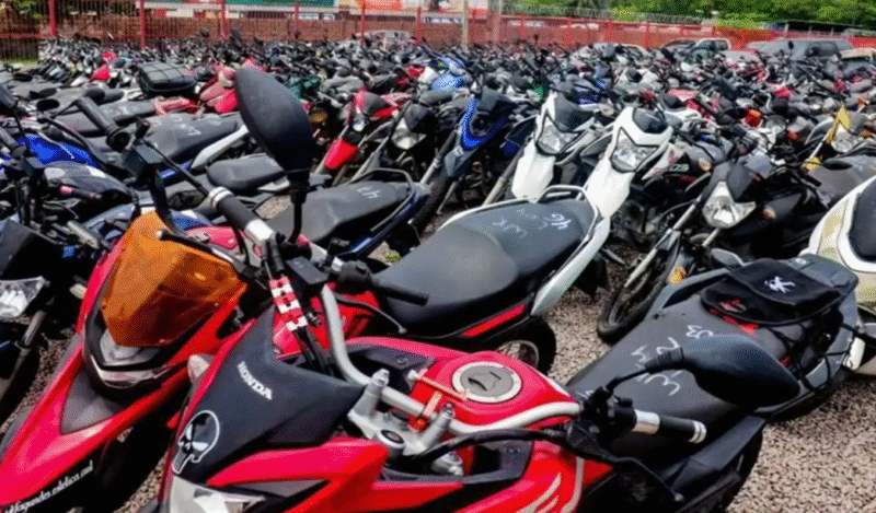 Neste certame, serão leiloados 251 veículos, sendo 207 motocicletas e 44 automóveis, todos em estado recuperável, que poderão voltar à circulação.