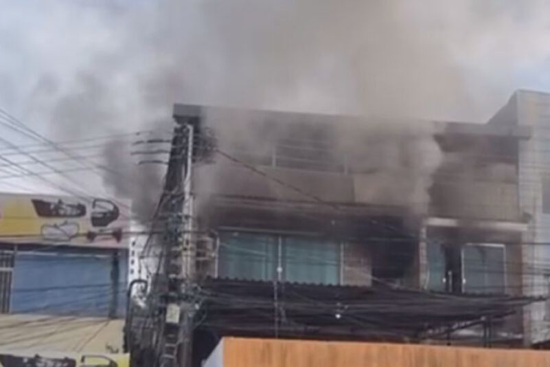 As chamas tomaram conta de grande parte do prédio, provocando apreensão entre moradores e comerciantes da área. Até o momento, não há confirmação de pessoas feridas, nem detalhes oficiais sobre o que teria causado o incêndio.